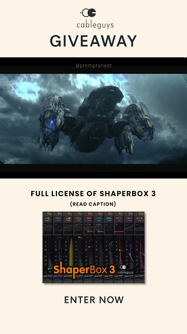 Received full licenses for all of CableGuys' plugins including their flagship ShaperBox 3 for use in my professional sound design work. Also hosted an official ShaperBox 3 giveaway for my instagram community in partnership with CableGuys.